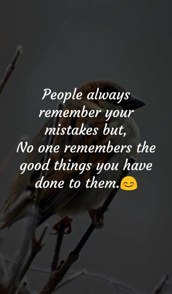 People always remember your mistake but, no one remember the good things you have done to them.