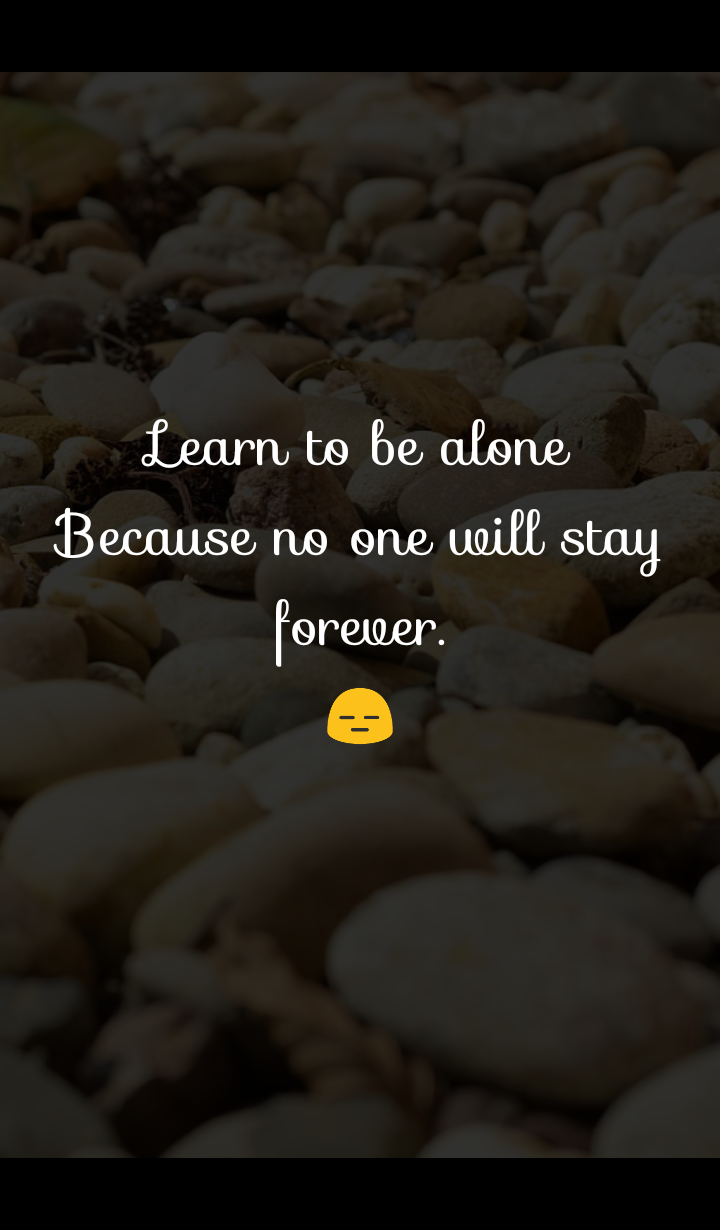 | Learn to be alone because no one will stay forever. |