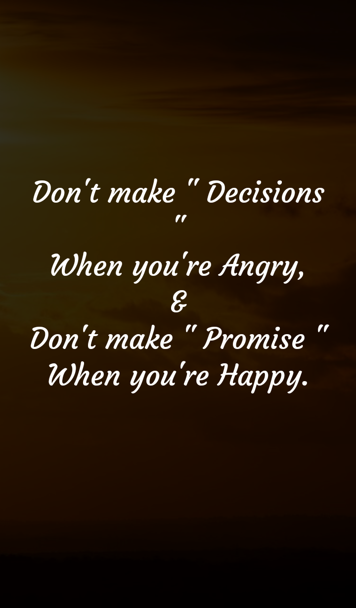 Don’t make ” Decisions ” When you’re Angry, & Don’t make ” Promise ” When you’re Happy.