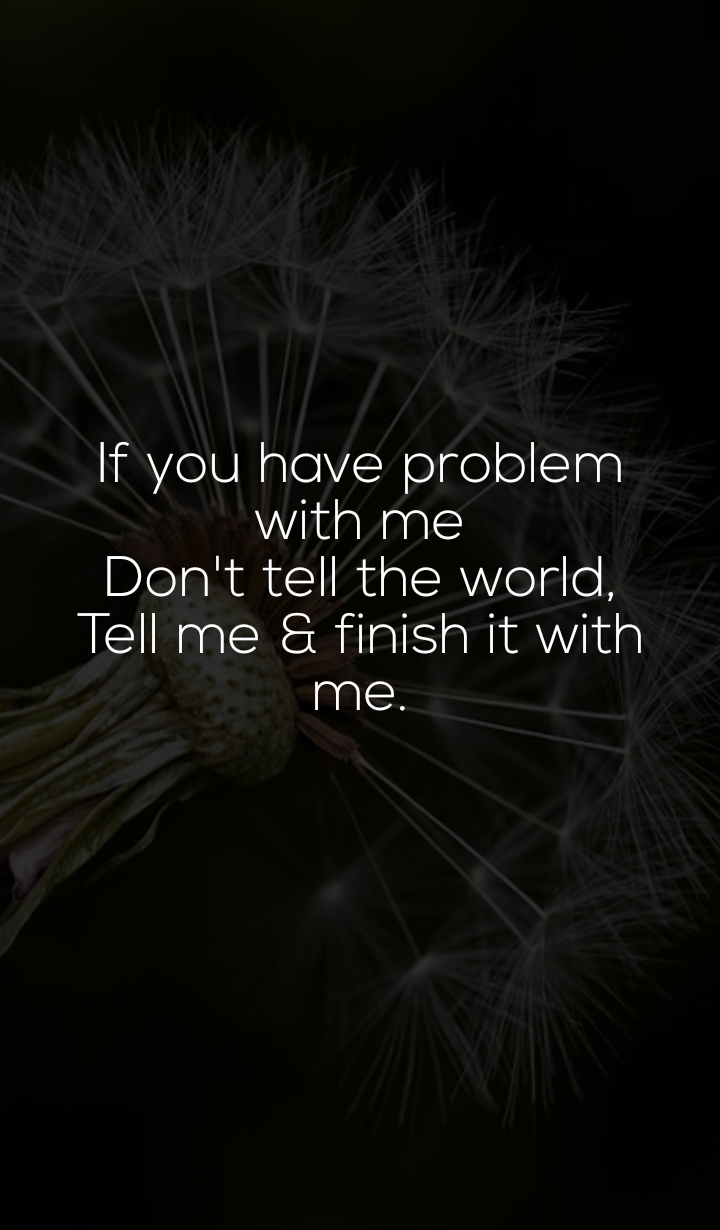 | If you have problem with me Don’t tell the world, Tell me & finish it with me. |