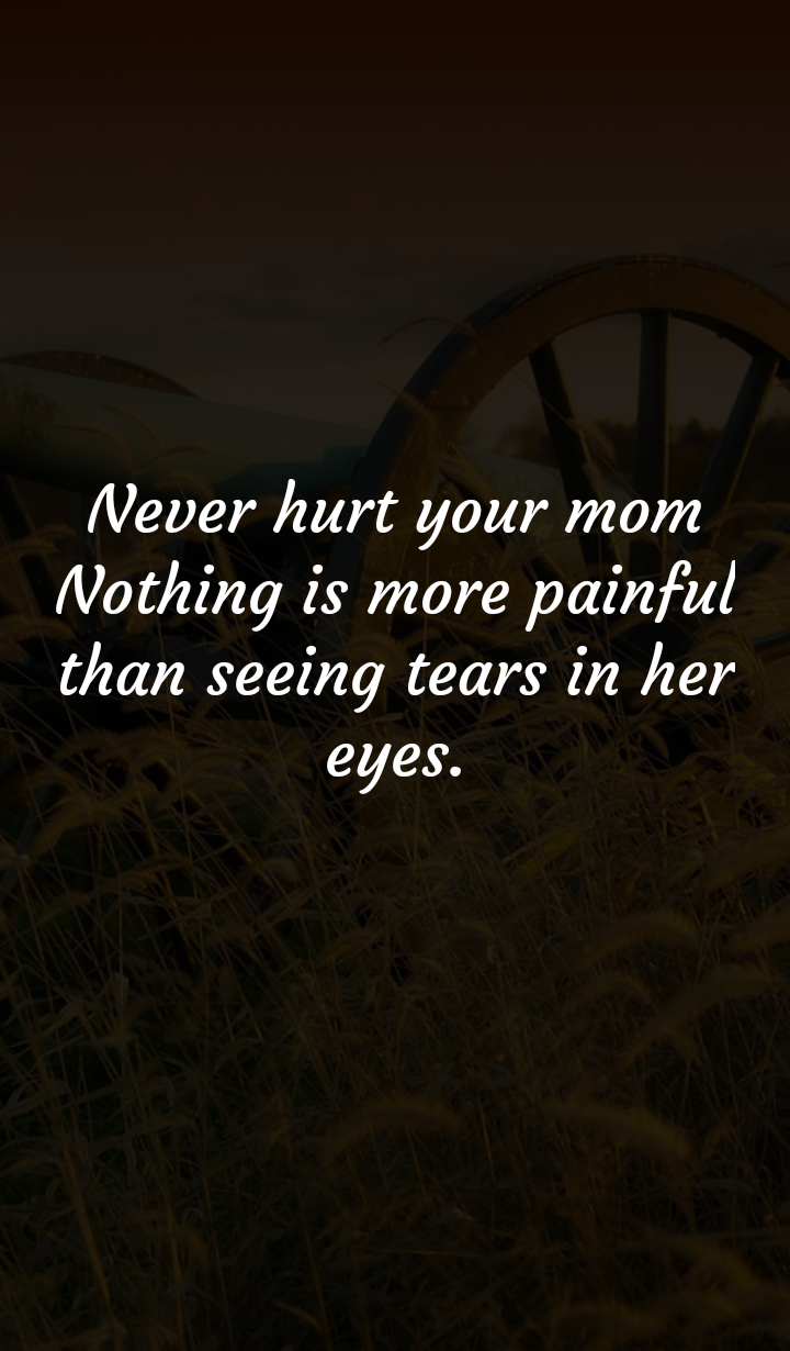 | Never hurt your mom Nothing is more painful than seeing tears in her eyes. |