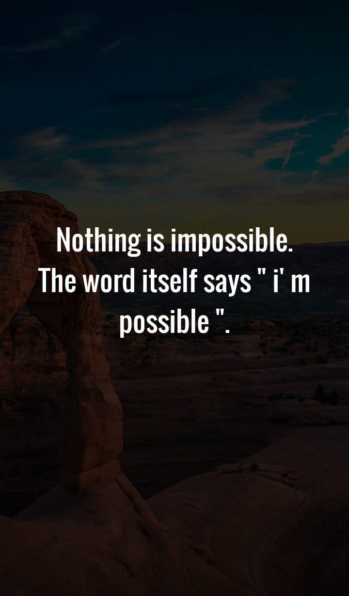 | Nothing is impossible. The word itself says ” i’ m possible “. |