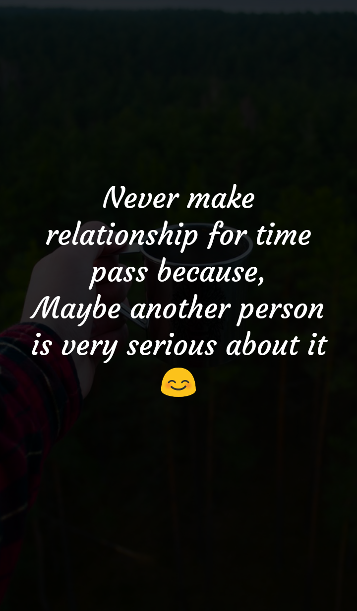 | Never make relationship for time pass because Maybe another person is very serious about it |