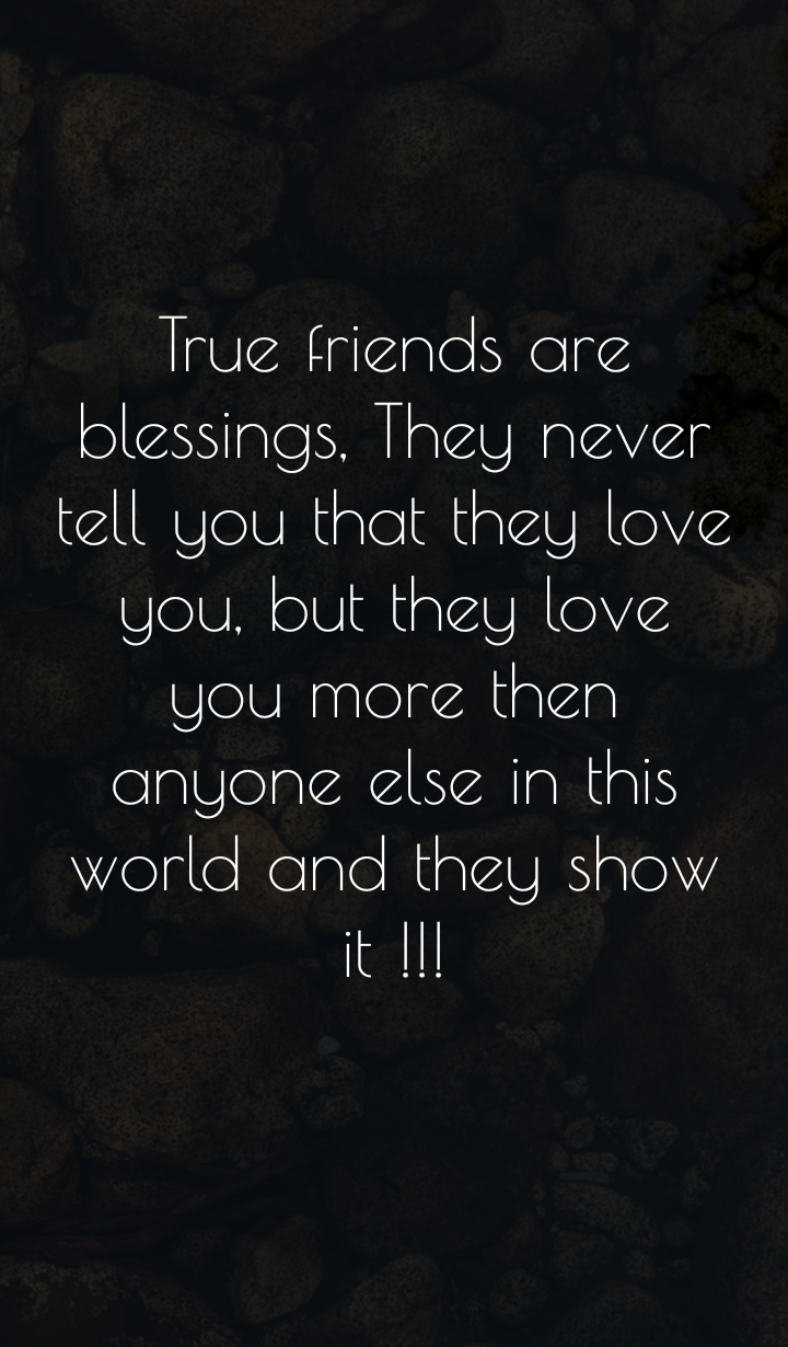 True friends are blessings, They never tell you that they love you, but they love you more then anyone else in this world and they show it !!!