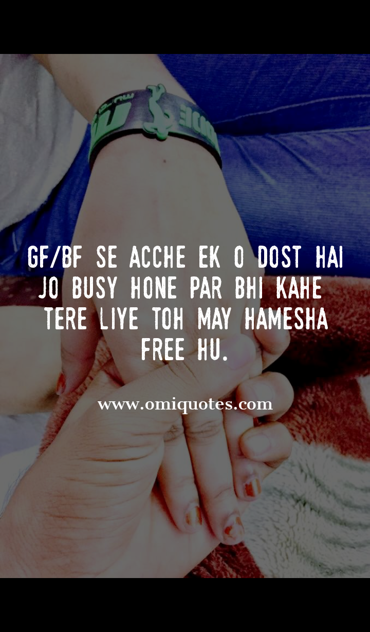 | GF/BF se acche ek o dost hai jo busy hone par bhi kahe tere liye toh may hamesha free hu. |