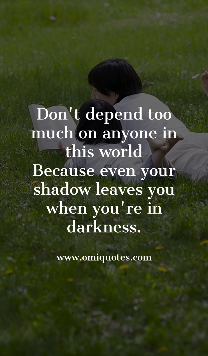 Don’t depend too much on anyone in this world Because even your shadow leaves you when you’re in darkness.