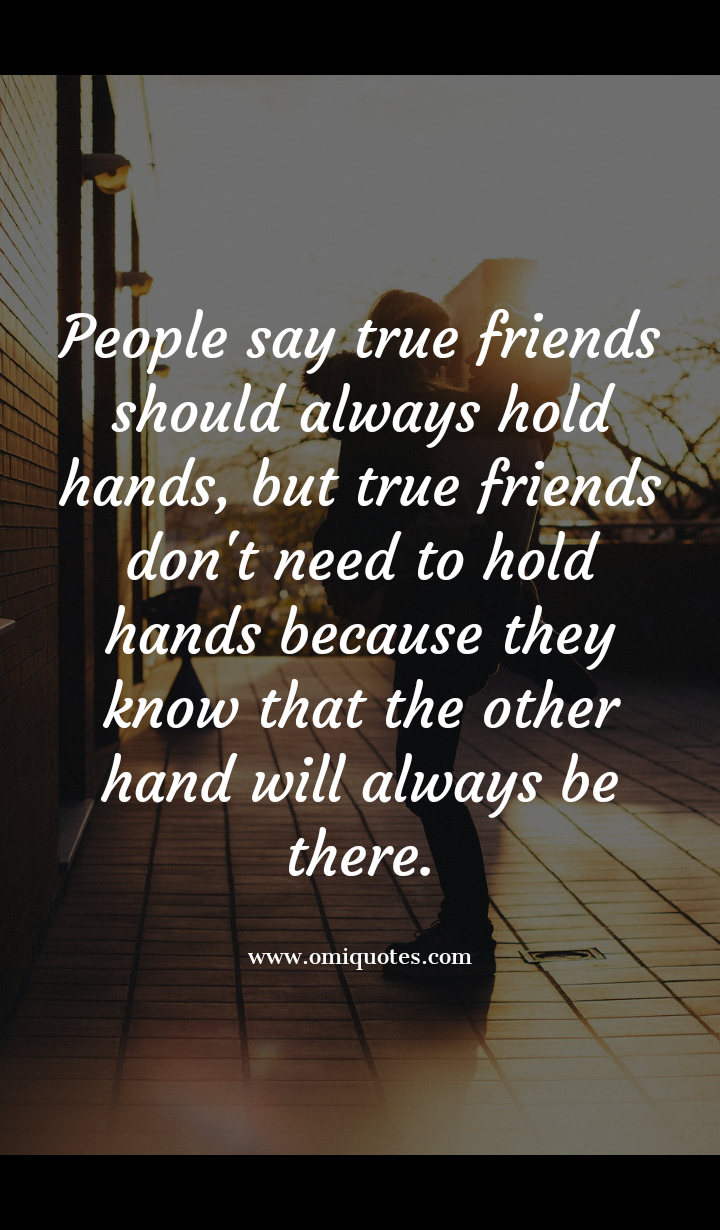 | People say true friends should always hold hands, but true friends don’t need to hold hands because they know that the other hand will always be there. |