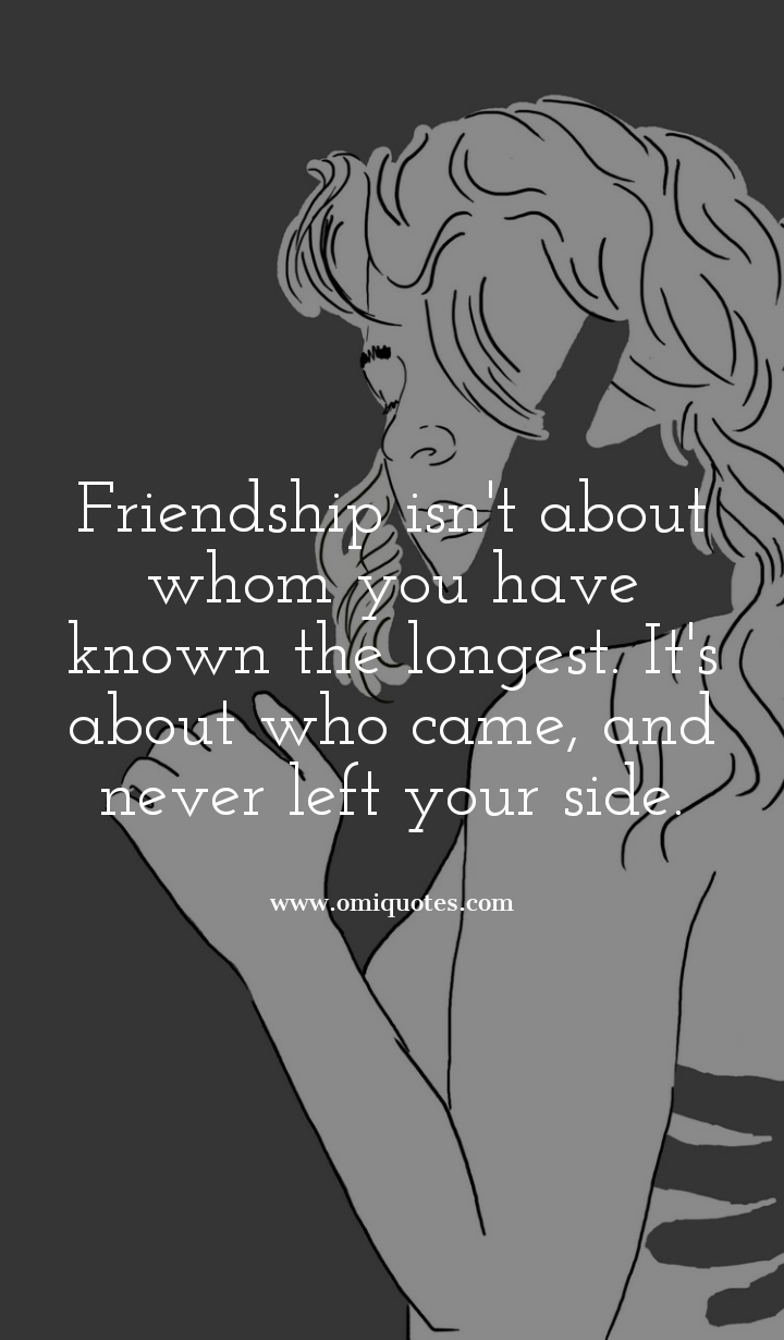| Friendship isn’t about whom you have known the longest. It’s about who came and never left your side. |