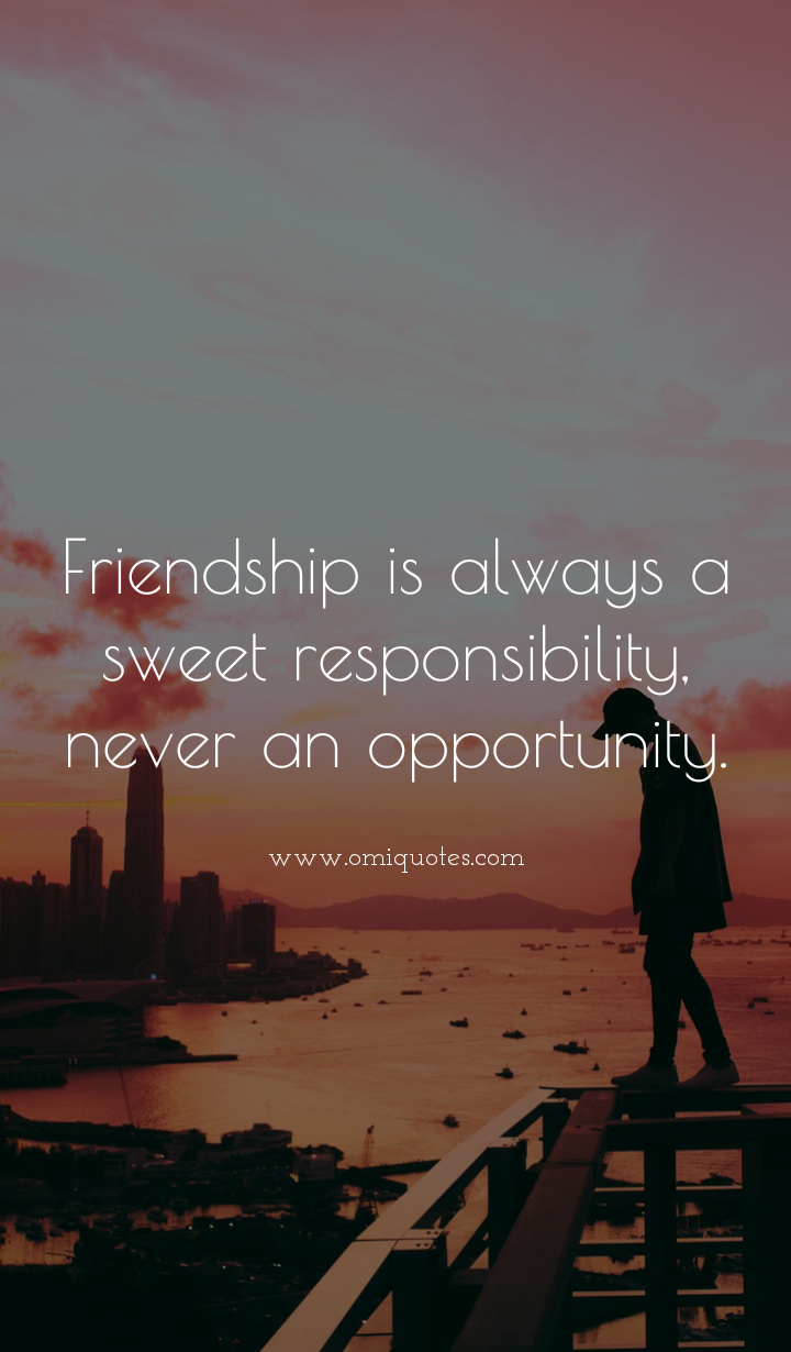 Friendship is always a sweet responsibility, never an opportunity.