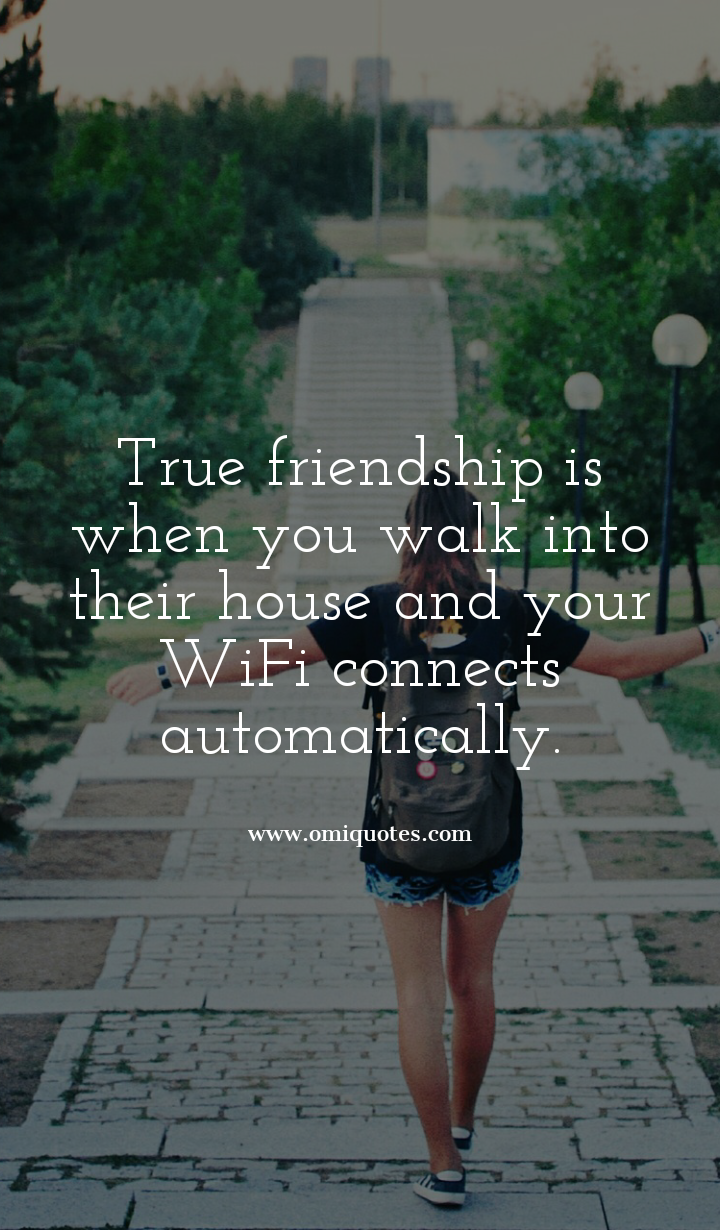 | True friendship is when you walk into their house and your WiFi connects automatically. |