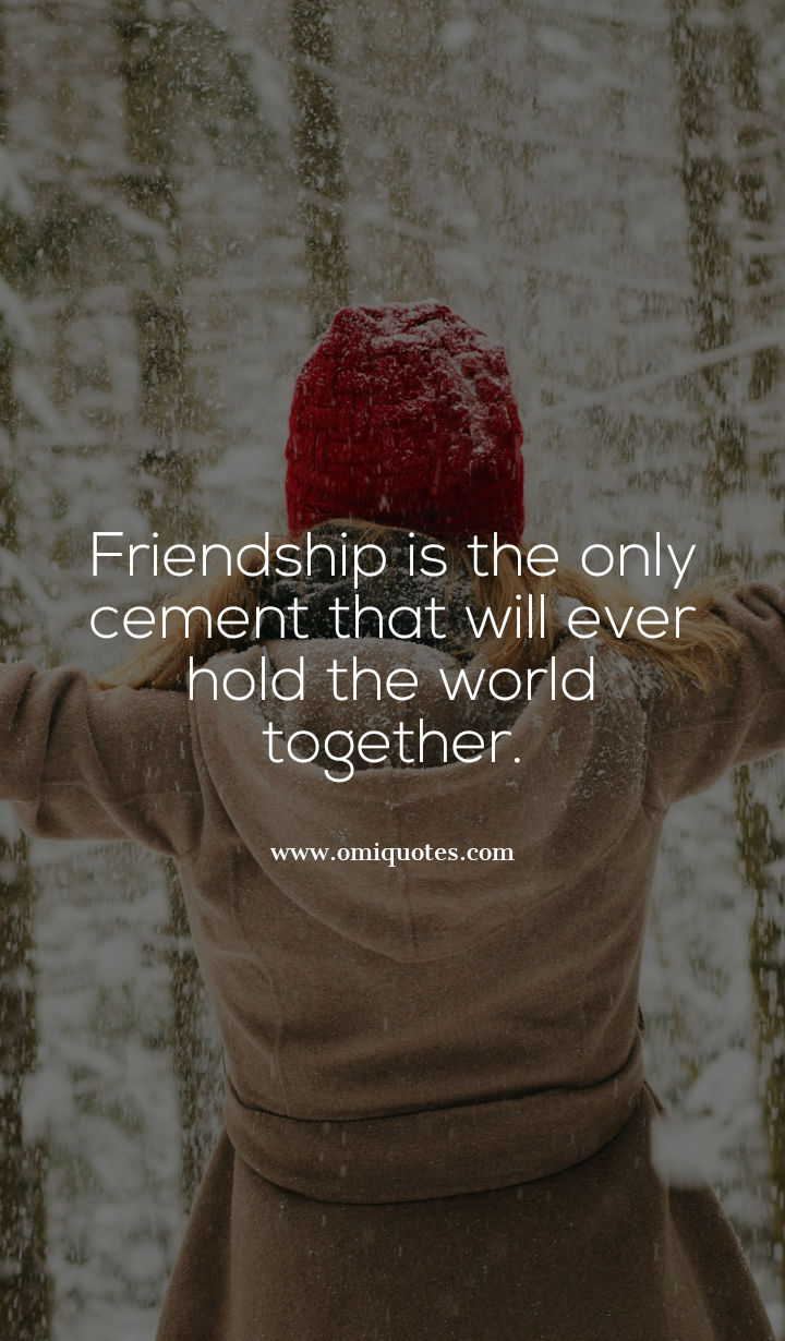 Friendship is the only cement that will ever hold the world together.