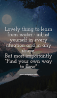 | Lovely thing to learn from water: adjust yourself in every situation and in any shape, but most importantly “Find your own way to flow” |
