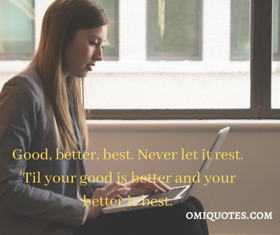 Good, better, best. Never let it rest. ‘Til your good is better and your better is best.