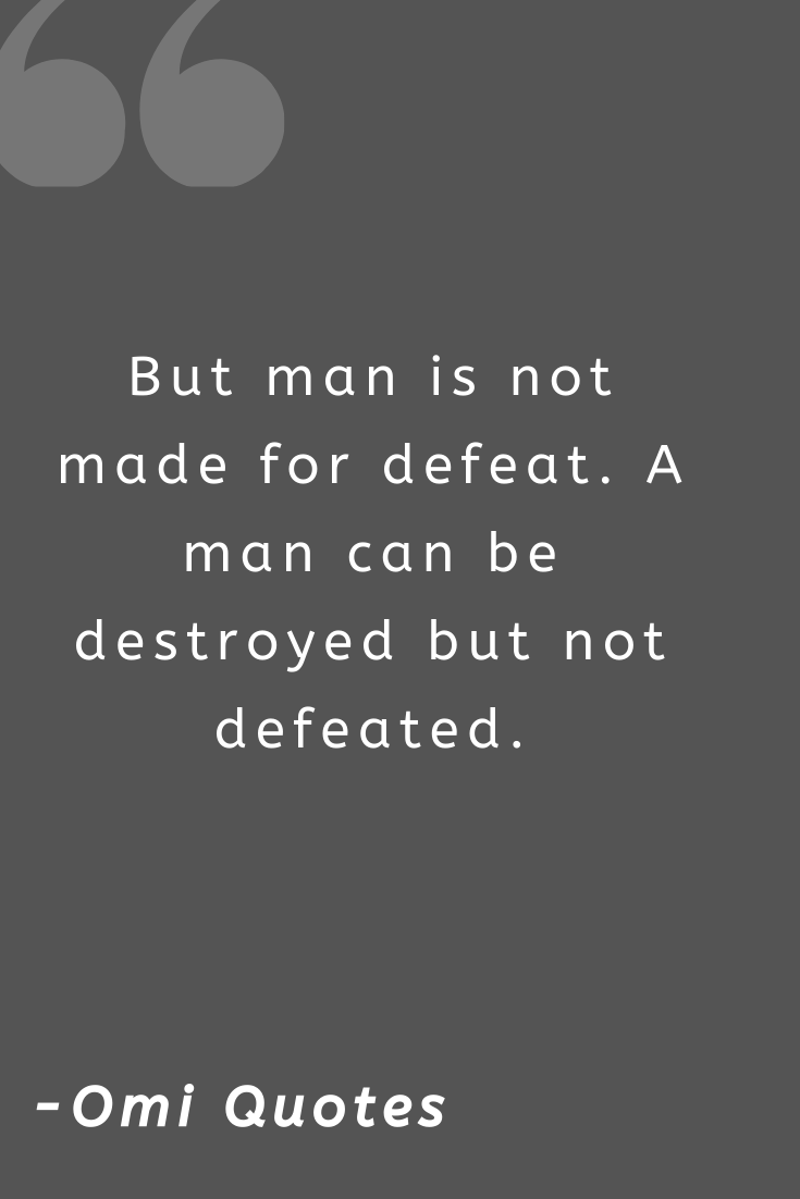 But man is not made for defeat. A man can be destroyed but not defeated.